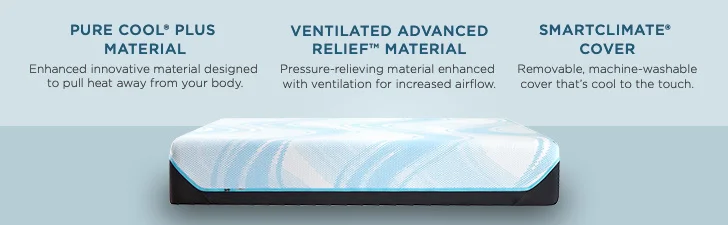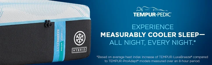 moreThe all-new TEMPUR-LuxeBreeze® mattress feels up to 10 cooler.* Featuring our newest and most advanced Pure Cool® Plus material that absorbs and pulls heat away from your body, it works with specialized cool-to-the-touch covers so you stay measurably cooler—all night long.*