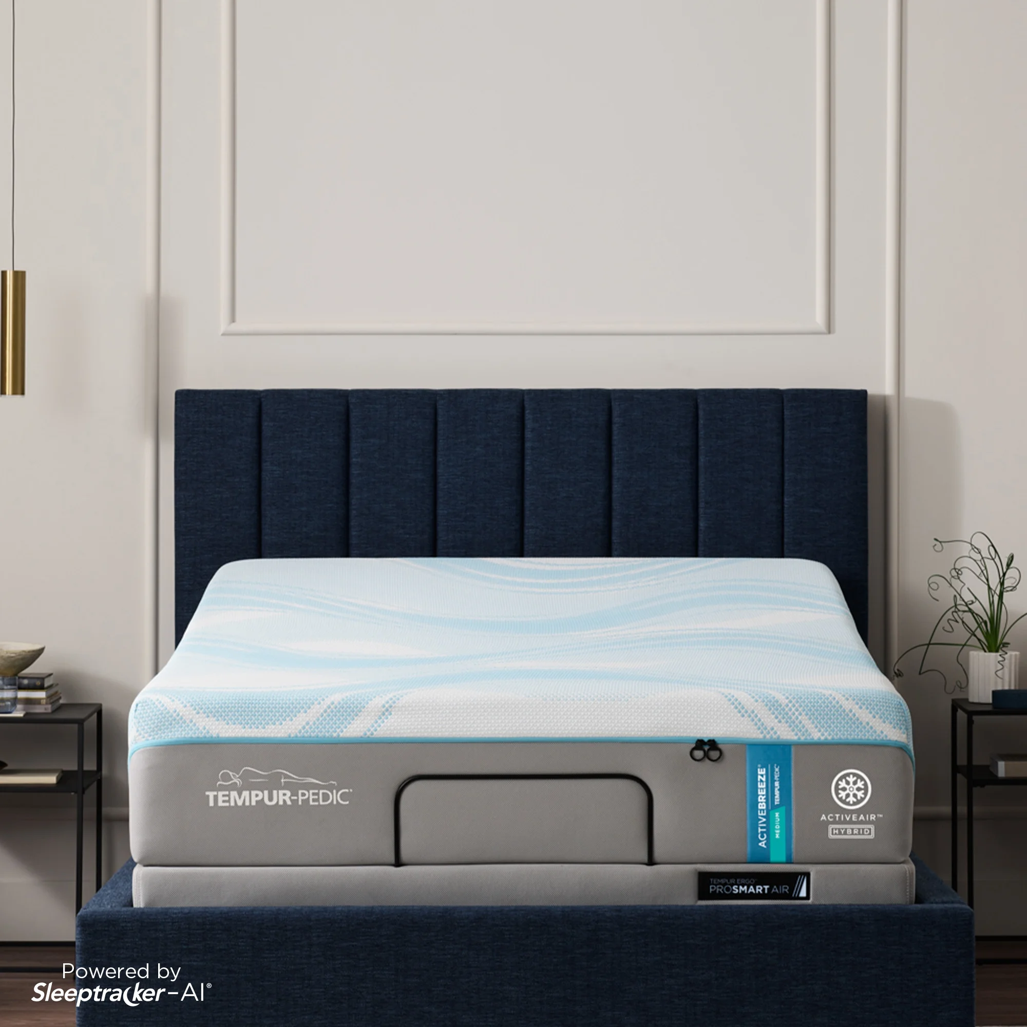 moreThe TEMPUR-ActiveBreeze® smart bed features a dual-zone climate control system to meet the needs of couples with different sleep temperature needs. Innovative ActiveAir Technology® allows you to personalize the climate on each side of the bed to cool or warm the mattress for your comfort while TEMPUR-Material™ provides pressure-relieving support all night long.