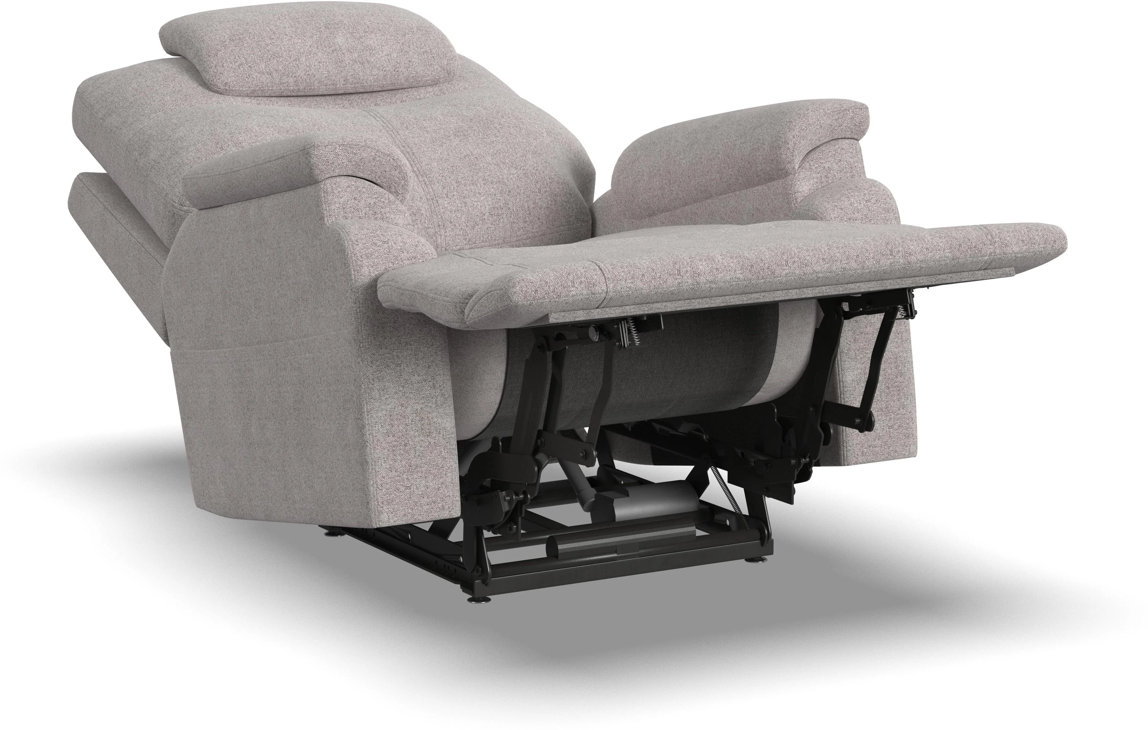 The Zecliner power lift recliner features a power headrest and power lumbar support with lift support controls. Memory Foam is featured throughout the entire recliner, in comfort areas such as the backrest, seat and shoulders.. The Zecliner has triple power capabilities, giving you the option to customize the headrest, lumbar and footrest positions. There is also a waterfall chaise for extreme comfort and a removeable technogel pillow from the headrest. With Flexsteel's patented Dual-Spring Blue steel at the core, reach complete relaxation and sleep the night away.