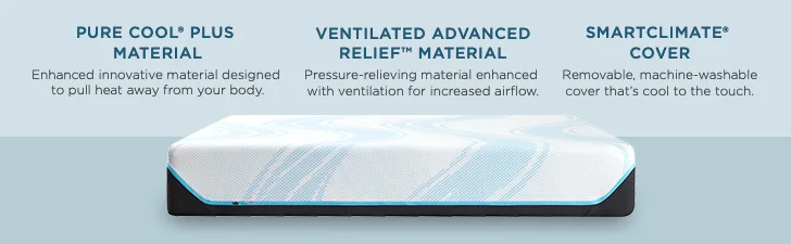 moreExperience proven, all-night cooling with the all-new TEMPUR-ProBreeze® mattress. Featuring specialized cool-to-the-touch covers that work with our exclusive Pure Cool® material to help pull heat away from your body so you stay cooler—all night long.